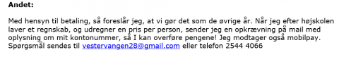 • Prisen for morgenmad er 50kr og afregnes med Sven eller Bjarne.